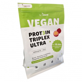 A VEGAN PROT3IN TRIPLEX ULTRA egy maracuja ízű vegán fehérje alapú italpor, amely borsó-, barnarizs- és tökfehérje kombinációját tartalmazza. A termék 10-féle fermentált bogyós gyümölcs keverékkel van kiegészítve, amely segíthet a változatos étrend támogatásában. Könnyen emészthető, és változatosan felhasználható, például turmixok vagy sütés során. A termék nem tartalmaz glutént, szóját, laktózt, színezéket, tartósítószert, és állati eredetű összetevőt sem. A borsó- és barnarizs-fehérje származása nem-EU, míg a termék származási helye az EU. A termék 450 grammos kiszerelésben kapható, amely 18 adagot tartalmaz.