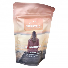 A Nordvital D-mannóz egy étrend-kiegészítő por, amely természetes D-mannózt tartalmaz. A termék 120 grammos kiszerelésben kapható, amely 60 adag port jelent. A D-mannóz természetben előforduló cukorfajta, mely többek között a fekete áfonyában és tőzegáfonyában is megtalálható. A por enyhén édes ízű, így könnyen beilleszthető a mindennapi étrendbe. A termék előállítása egy olyan üzemben történik, ahol földimogyorót, dióféléket és szezámmagot is feldolgoznak. A Nordvital D-mannóz laktóz- és gluténmentes, valamint vegán és GMO-mentes termék. A csomagolásán feltüntetett minőségmegőrzési időpontig érdemes felhasználni.
