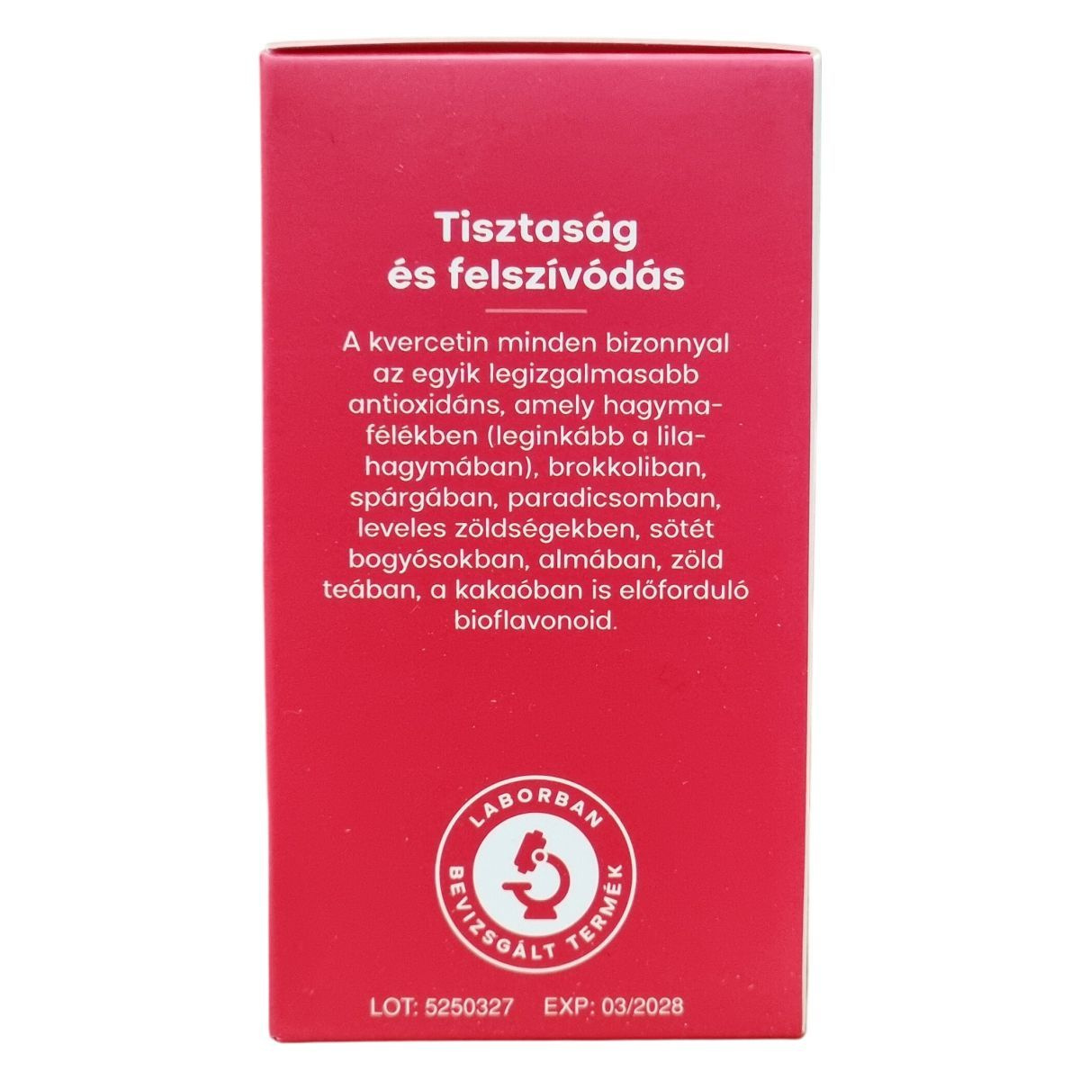 A kvercetin egy izgalmas antioxidáns, amely hagymafélékben, brokkoliban, spárgában, paradicsomban, leveles zöldségekben, sötét bogyósokban, almában, zöld teában és kakaóban is előforduló bioflavonoid. A termék laborban bevizsgált, garantált tisztaságú és felszívódású, kizárólag vegán összetevőkből készült kapszulákban kerül forgalomba, így megfelel a speciális étrendi igényeknek is.