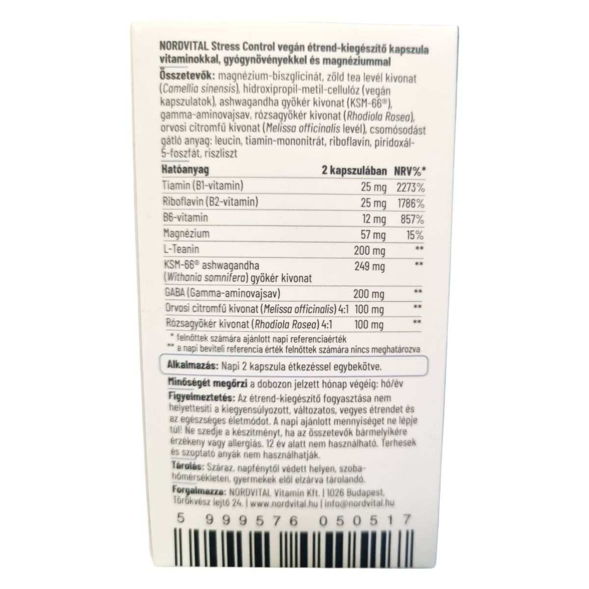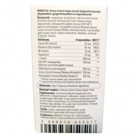 A Nordvital Stress Control kapszula speciálisan kifejlesztett formulája a stressz és fáradtság kezelését segítő növényi kivonatok és vitaminok kombinációját tartalmazza. A B1-, B2- és B6-vitamin támogatja az idegrendszer és a pszichológiai funkciók normál működését, míg a magnézium hozzájárul az izmok és az idegrendszer kiegyensúlyozott aktivitásához. Az ashwagandha és a rózsagyökér adaptogén tulajdonságaik révén segíthetik a szervezet alkalmazkodását az érzelmi és fizikai stresszhez. A citromfű hozzájárulhat a relaxációhoz és a jó közérzet fenntartásához, a GABA pedig elősegítheti a nyugalmi állapot elérését. A termék laborban bevizsgált, GMP-minősített gyártóüzemben készül, és 100%-ban vegán, gluténmentes, laktózmentes, GMO-mentes összetételű.