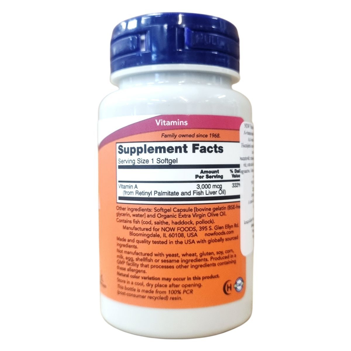 A NOW Vitamin A 10.000 IU lágyzselatin kapszula 100 db kiszerelésben érhető el. Az A-vitamin hozzájárulhat az immunrendszer megfelelő működéséhez, a normál látás fenntartásához, valamint a bőr és a nyálkahártyák egészséges állapotának megőrzéséhez. Részt vehet a megfelelő vasanyagcserében is. A termék kapszulahéja marhazselatinból készült, és tartalmaz glicerin, vizet valamint extra szűz olívaolajat. A halolajban található A-vitamin forrásként szolgál, amely természetes eredetű. A készítmény nem tartalmaz allergéneket, mint élesztő, búza, glutén, szója, kukorica, tej, tojás, kagyló vagy szezámmag, ugyanakkor a kapszula tartalmaz halat. A terméket GMP szabvány szerint gyógyszeripari tisztasági előírásoknak megfelelően állítják elő az USA-ban, ahol globálisan beszerzett alapanyagokat használnak. A palack 100% újrahasznosított műanyagból készül, és természetes színeltérések előfordulhatnak. Az ajánlott napi adag egy kapszula, mely egyszerűen beilleszthető a napi étrendbe az étkezéshez.