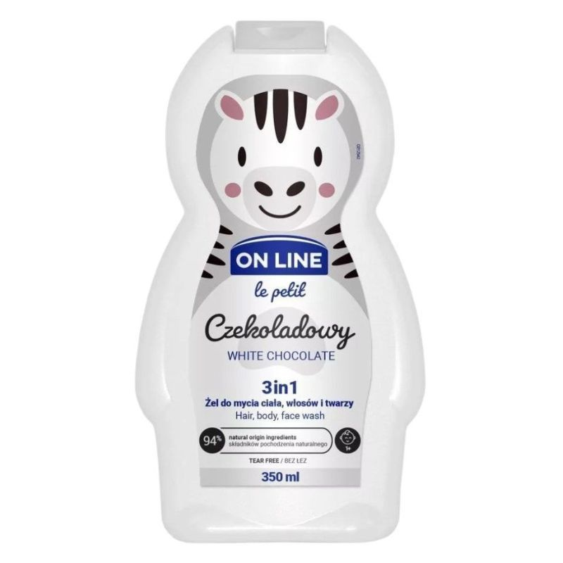 94%-ban természetes eredetű összetevőket tartalmazó, 3 az 1-ben gyerek tusfürdő testre és hajra.