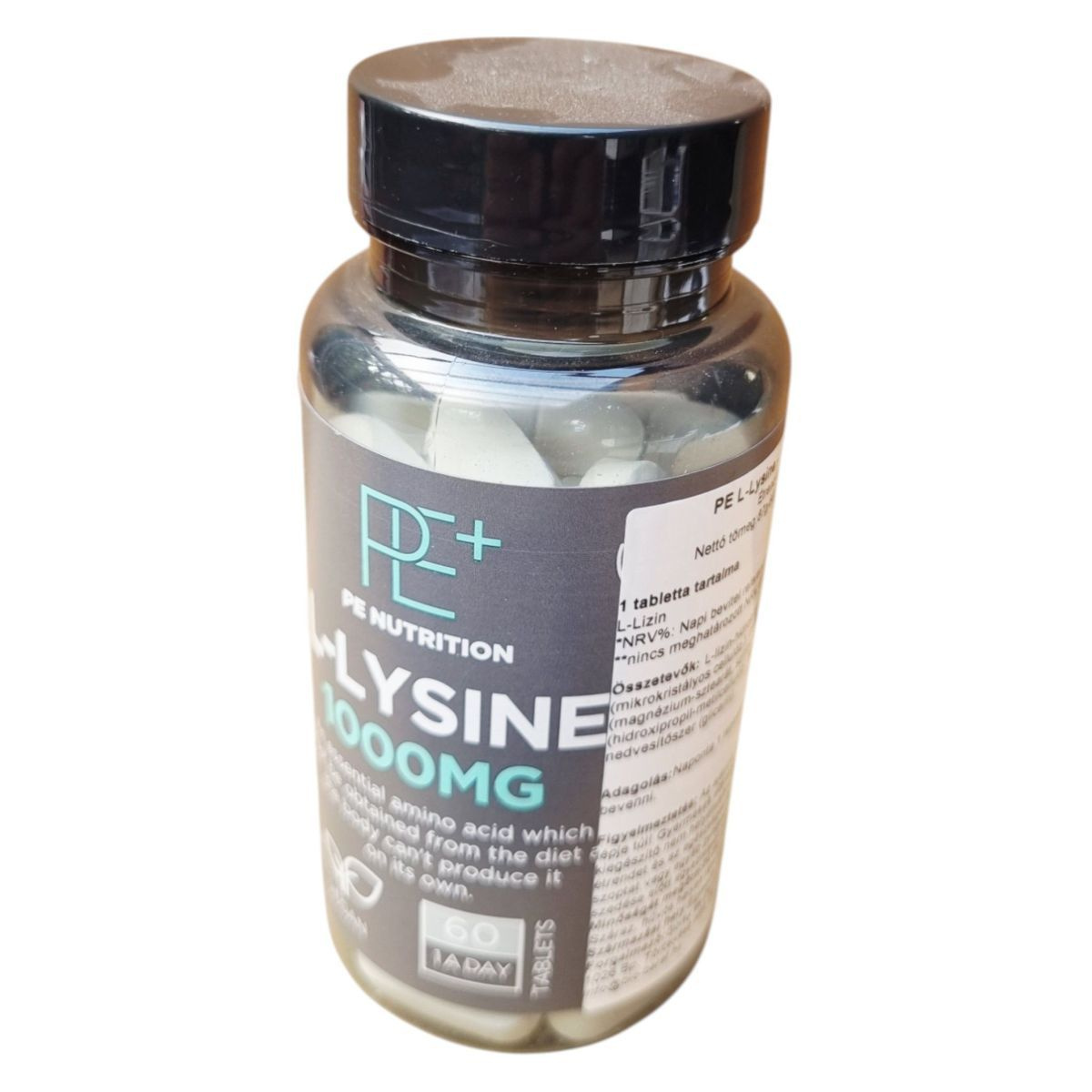 A PE NUTRITION L-LYSINE 1000mg egy étrend-kiegészítő, amely esszenciális aminosavat, L-Lizint tartalmaz. Ez az aminosav fontos szerepet játszhat a szervezet fehérjeszintézisében és az immunrendszer támogatásában. A termék vegán étrendbe illeszthető, és napi egy tabletta fogyasztása ajánlott étkezéssel együtt. Az étrend-kiegészítő nem helyettesíti a kiegyensúlyozott étrendet és az egészséges életmódot. A terméket száraz, hűvös helyen kell tárolni, és gyermekek elől elzárva tartani. A gyártó a Törökverő és Zentai Kft., amelynek székhelye Budapesten található.