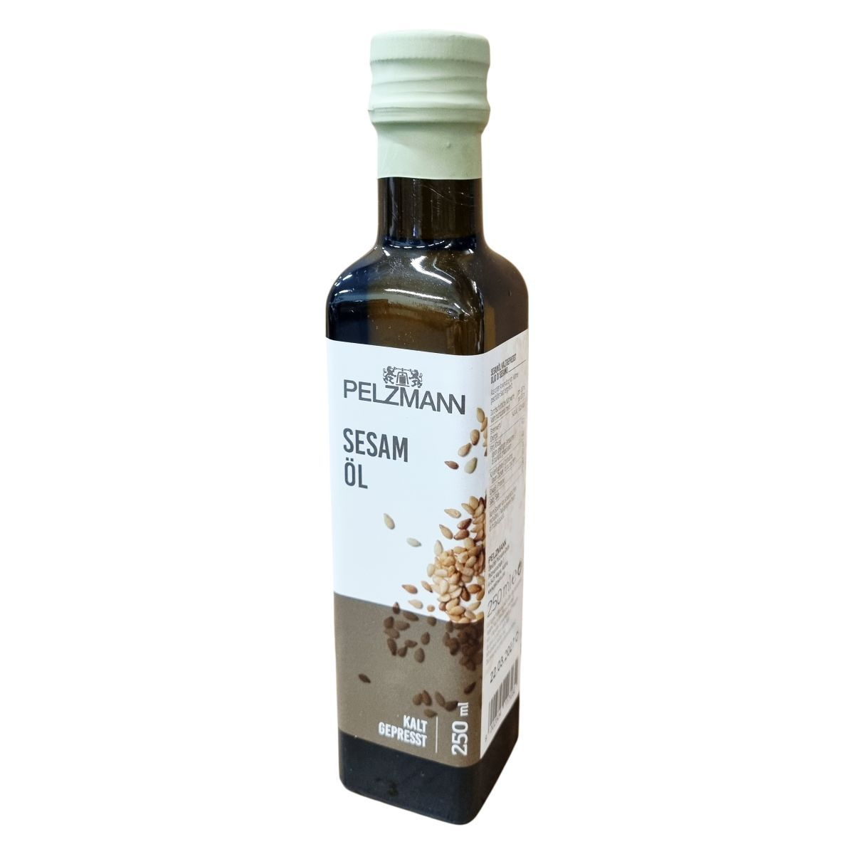 A Pelzmann szezámolaj az emberiség egyik legrégebbi olajnövényeiből készült, meleg alkalmazása mellett hántolt magból. Átlagos tápértéke 100 ml-ben 3404 kJ (828 kcal), magas zsírtartalmú, ebből 14 g telített zsírsavat tartalmaz. Szénhidrát, cukor, fehérje és só mennyisége nincs benne. A termék Ausztriából származik, és rejtett módon tartalmazhat maghéj maradványokat. A palack üvegből készült, kupakja fémből, kapszulája műanyagból áll, és az újrahasznosítás szabályainak megfelelően kell kezelni. A jellegzetes szezámíz miatt az olaj felhasználása főként ételek ízesítéséhez ajánlott, nem alkalmas fritőzben való használatra.