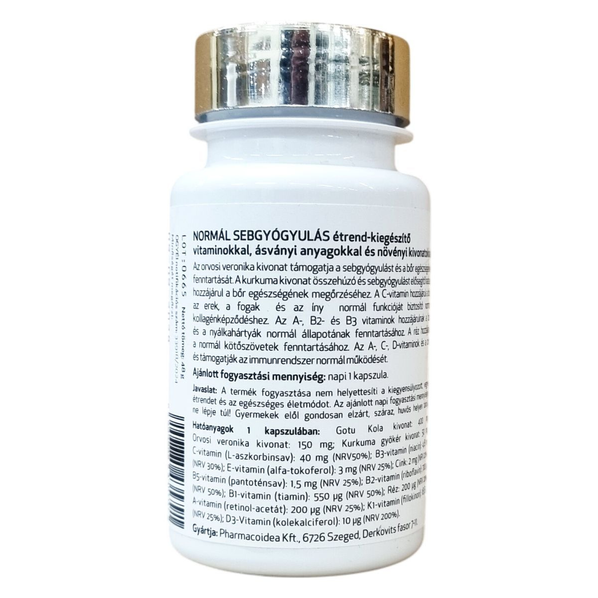 A termék fő hatóanyagai, mint az orvosi veronika és a kurkuma kivonatok elősegítik a sebgyógyulást és a bőr egészségének megőrzését. A kurkuma kivonat összehúzó hatású, míg a C-vitamin támogatja a kollagénképződést, hozzájárulva a bőr, a fogak és az íny normál működéséhez. Az A-, B2- és B3-vitaminok fenntartják a bőr és a nyálkahártyák egészséges állapotát, a réz pedig a kötőszövet normál működéséhez járul hozzá. Az immunrendszer működését az A-, C-, D-vitaminok és a cink támogatják. A kapszulák hidroxipropil-metilcellulóz bevonatúak, amely segíti a hatóanyagok fogyaszthatóságát és megfelelő adagolását.