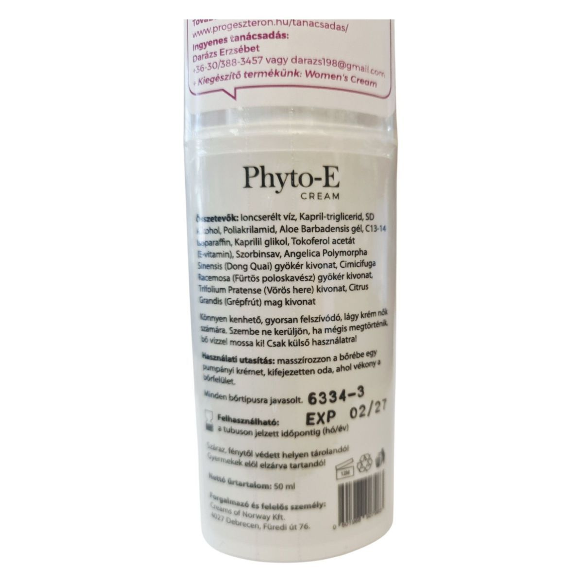 A Phyto-E Cream for women egy speciálisan nők számára kifejlesztett krém, amely könnyen kenhető és gyorsan felszívódik. Az alkalmazás módja a menstruációs ciklushoz igazodik, de ciklus nélküli használat esetén is van javasolt alkalmazási rend. A termék összetevői között megtalálható az E-vitamin és különböző növényi kivonatok, mint például a Dong Quai és a Vörös here. A krém minden bőrtípusra javasolt, de fontos, hogy szembe ne kerüljön, és csak külsőleg alkalmazható. A termék tárolása száraz, fénytől védett helyen ajánlott, és gyermekek elől elzárva tartandó. További információkért és ingyenes tanácsadásért látogasson el a www.progeszteron.hu/tanacsadas/ oldalra vagy vegye fel a kapcsolatot Darazs Erzsébettel.