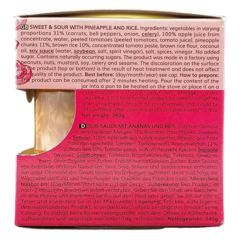 Ez a készétel remekül használható önálló fogásként, de köretként is megállja a helyét különféle húsételek mellett. Az édes-savanyú ananász íze különleges karaktert ad az étkezésekhez, így a család minden tagja élvezheti. Tökéletes választás lehet piknikekhez, munkahelyi ebédekhez vagy akár otthoni étkezésekhez is, hiszen gyorsan és egyszerűen elkészíthető. Az adalékanyag-mentesség miatt pedig biztos lehet benne, hogy csak a legjobb minőségű alapanyagokat fogyasztja.