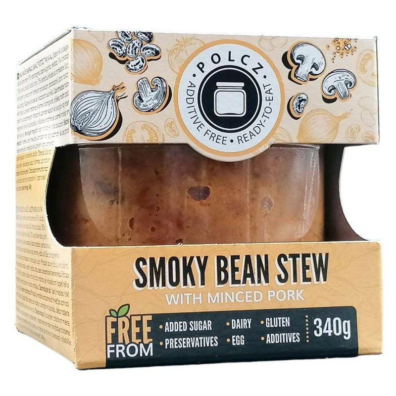 Összetevők: bab, darált füstölt tarja, hagyma, paprika, só, fűszerek.