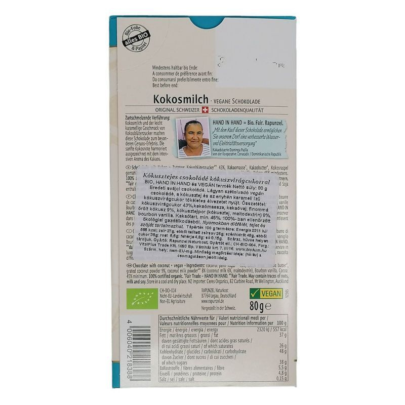 Fedezd fel a kókusztej és a karamellás ízű kókuszvirágcukor tökéletes harmóniáját egy ízletes, bio csokoládéban! Ez a finomság vegán, és 45% kakaótartalommal rendelkezik, így ideális választás az egészséges édességek kedvelőinek.