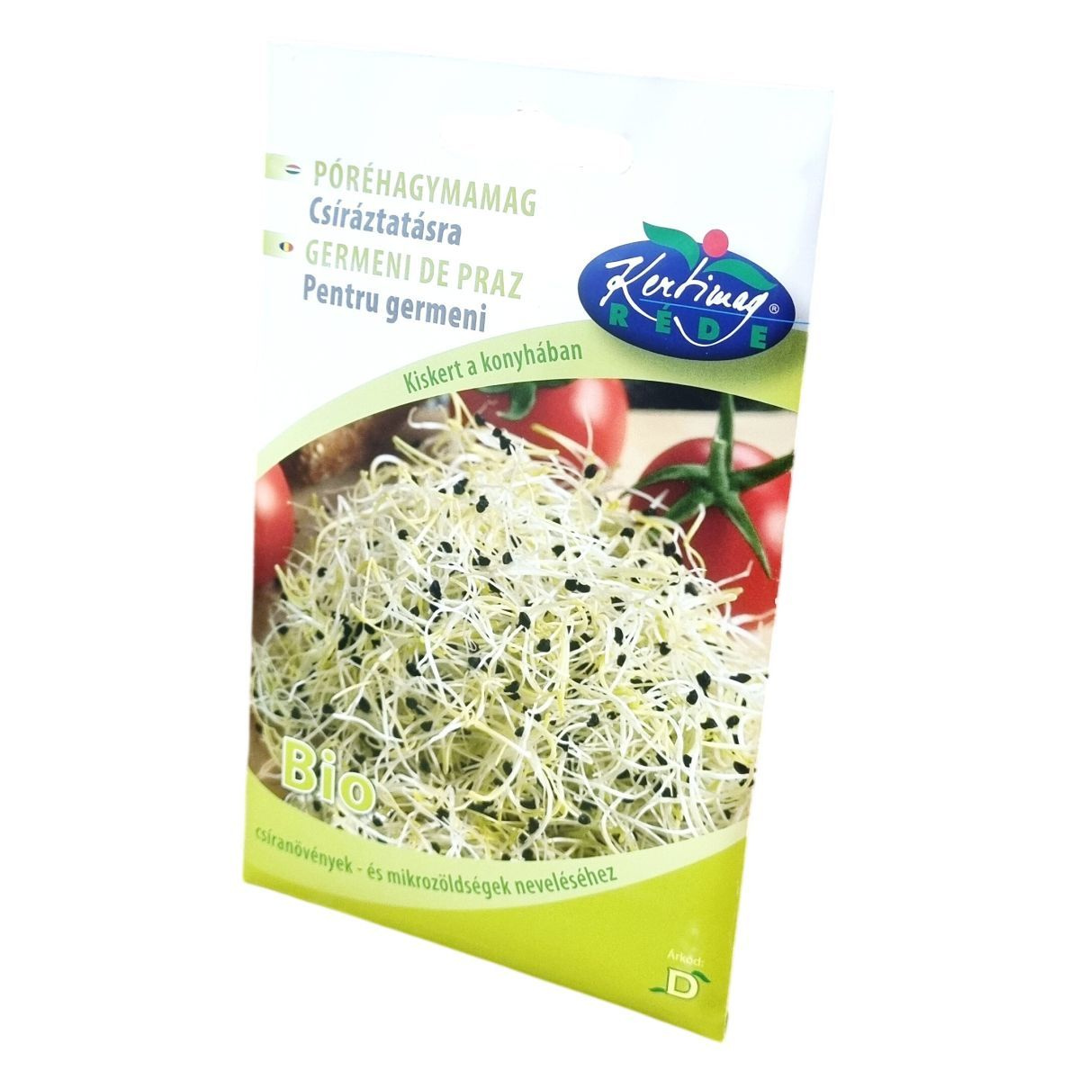 Bio póréhagymamag csíráztatásra, mely ideális csíranövények és mikrozöldségek neveléséhez kiskerti vagy otthoni felhasználásra.
