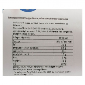 A Rice Up barna rizses puffasztott szelet köles (amaránt) egy ízletes és tápláló snack, amely tökéletes választás mindazok számára, akik egészséges alternatívát keresnek a hagyományos nassolnivalók helyett. Ez a termék a teljes kiőrlésű barna rizs, fekete rizs, köles és amaránt kombinációjával készült, így gazdag tápanyagokban és rostokban. A puffasztott szeletek könnyű textúrája és ropogós állaga miatt ideális választás lehet reggelire, uzsonnára vagy akár egy gyors energialöketként a nap bármely szakában. A természetes összetevőknek köszönhetően a szeletek nemcsak finomak, hanem táplálóak is, így hozzájárulhatnak a kiegyensúlyozott étrendhez.
