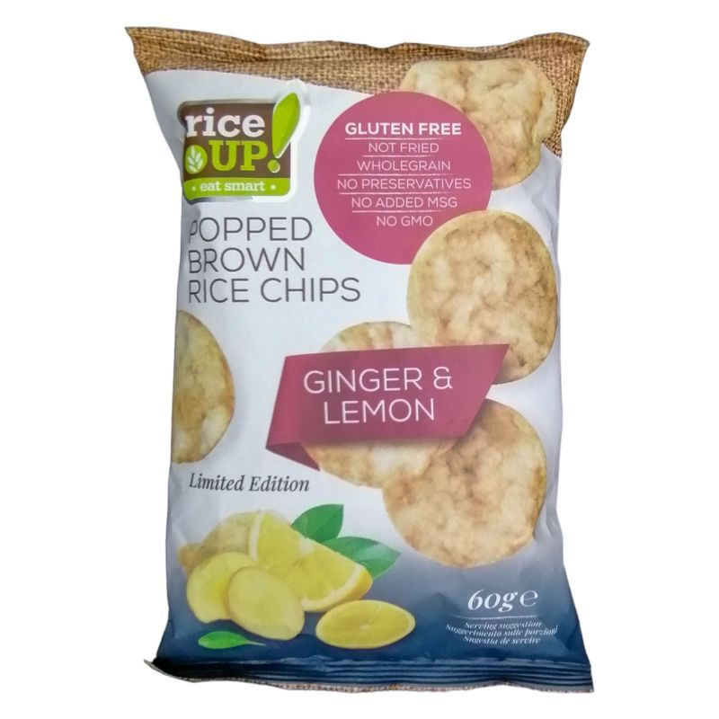 Fedezd fel a ropogós, gluténmentes barna rizs chips különleges ízét, amely citrom és gyömbér frissítő kombinációjával kényeztet. Az olajban nem sült snack tökéletes választás egészséges nassoláshoz!