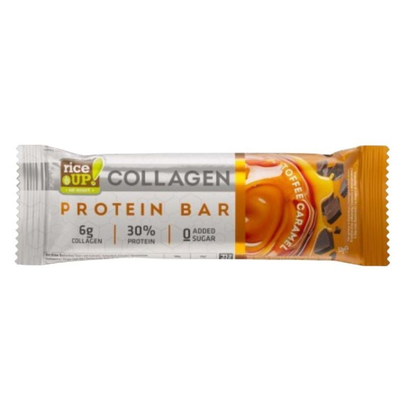 Kollagénes fehérje szelet Karamellás ízesítésű hozzáadott cukor nélkül.
