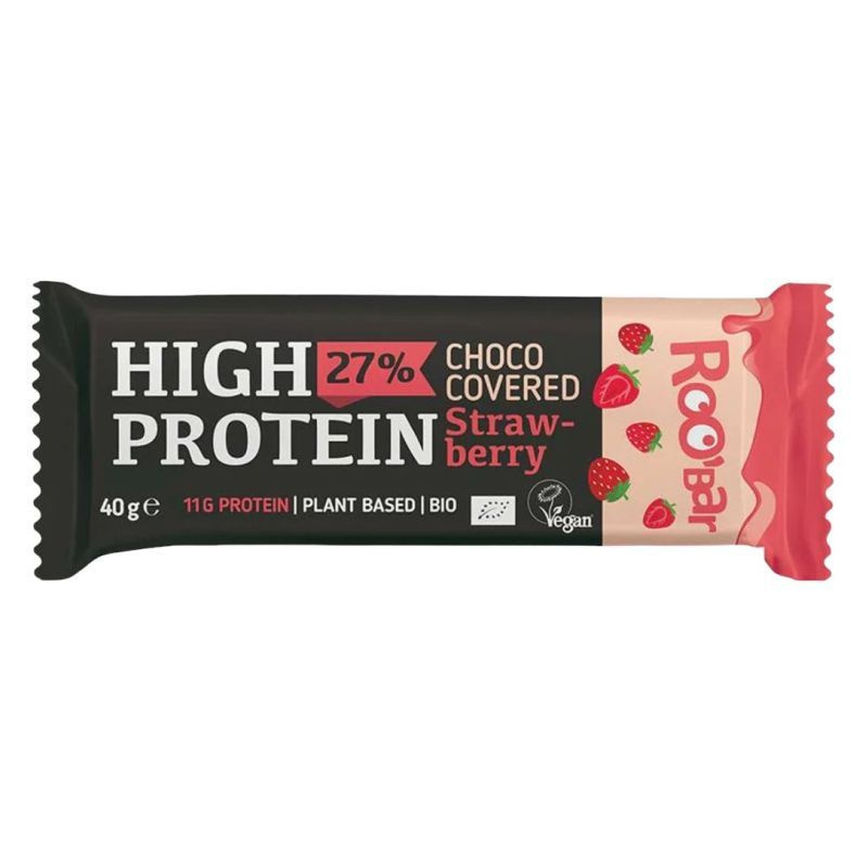 27%-os fehérjetartalommal, a texturált borsófehérje és a rizsfehérje harmonikus kombinációjának köszönhetően. A magas fehérjetartalmú Strawberry szelet finom rózsaszín funkyjával egy teljesen új, gyümölcsös frissességet hoz a márka fehérjetartományába!*biogazdálkodásból