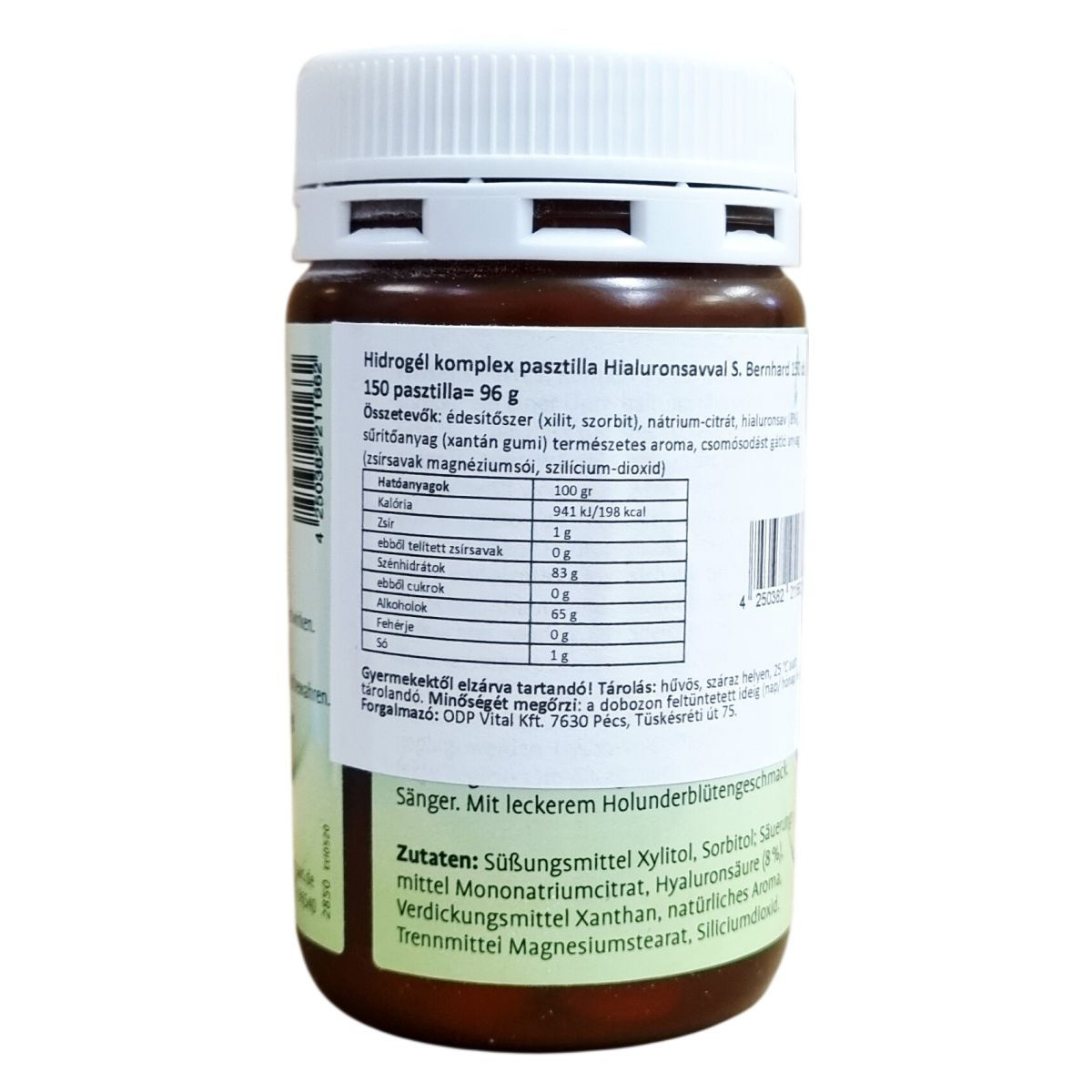 Hidrogél komplex pasztilla hialuronsavval, amely bodzavirág ízesítéssel készül, és jótékony hatással van a torokra és a hangra. A termék 150 darab pasztillát tartalmaz, nettó tömege 96 g, Németországban készült.