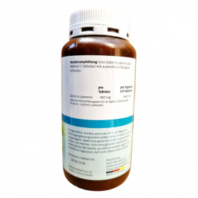 A Kräuterhaus Sanct Bernhard Spirulina étrend-kiegészítő tabletta Spirulina algát tartalmaz, amely egy természetes tápanyagforrás lehet. A termék napi adagja 3600 mg Spirulina algát biztosíthat, amely hozzájárulhat a szervezet tápanyagigényének kielégítéséhez. A tabletták könnyen lenyelhetők, és a főétkezések előtt ajánlott fogyasztani őket. A termék nem helyettesíti a kiegyensúlyozott étrendet és az egészséges életmódot, és fontos, hogy az ajánlott napi mennyiséget ne lépjük túl. A terméket hűvös, száraz helyen, 25 °C alatt kell tárolni.