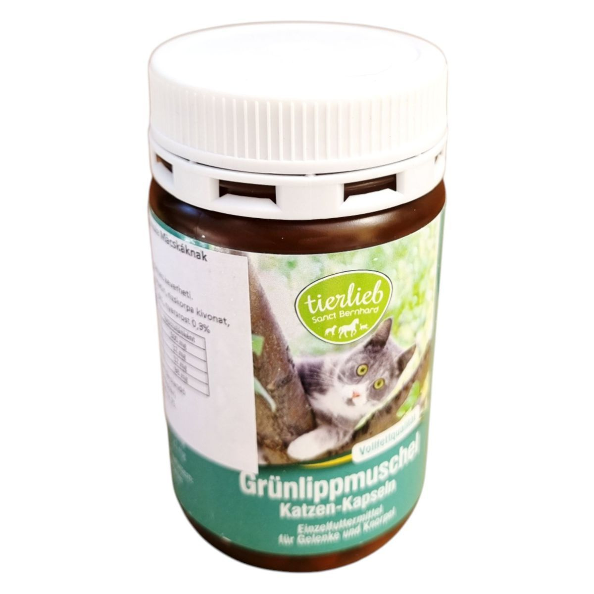 A Sanct Bernhard TIERLIEB Zöldkagyló kapszula kifejezetten macskáknak készült, és célja, hogy támogassa az ízületek és porcok egészségét. A termék fő összetevője a zöldkagyló koncentrátum, amely glükozaminoglikánt és taurint is tartalmazhat, hozzájárulva a macskák általános jólétéhez. A kapszulák könnyen adagolhatók, és akár az eledelhez is keverhetők. A terméket fénytől védve, száraz helyen, 25 °C alatt ajánlott tárolni. A forgalmazó az ODP Vital Kft., amely Pécsen található.