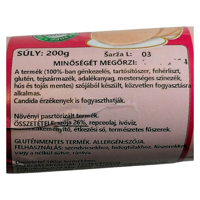 Összetevők: szója 26%, ivóvíz, repceolaj, kukoricakeményítő, étkezési só, természetes fűszerek
