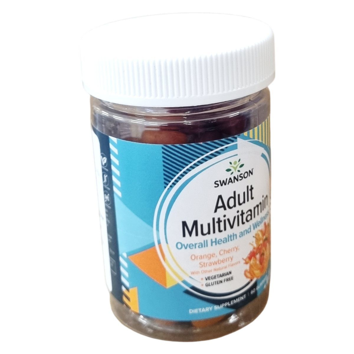 A Swanson Adult Multivitamin Overall Health and Wellness gumivitamin egy felnőttek számára készült étrend-kiegészítő, amely 60 darab finom gumivitamint tartalmaz narancs, cseresznye és eper ízesítéssel, valamint egyéb természetes aromákkal. A termék különféle vitaminokat, mint például A-, C-, D-, E- és B-vitaminokat, valamint niacinamidot, folsavat, biotint, pantoténsavat, nátriumot és inozitolt tartalmaz. A készítmény vegetáriánus étrendbe illeszthető, valamint gluténmentes, így különböző táplálkozási igényekhez igazodik. Egy gumivitamin energia- és tápérték adata nincs megadva. A termék összetevői között megtalálhatóak a természetes gyümölcsaromák, növényi olaj és természetes színezékek, így ízletes és színes formában egészítheti ki a napi vitaminbevitelt. A terméket kizárólag a javasolt adagolás szerint szabad fogyasztani, és nem helyettesíti a változatos étrendet és az egészséges életmódot. Tárolása során száraz, hűvös helyet kell biztosítani, és gyermekek elől elzárva tartandó. A készítményt az USA-ban gyártják, forgalmazza a Creams of Norway Kft., OGYÉI notifikációval rendelkezik.