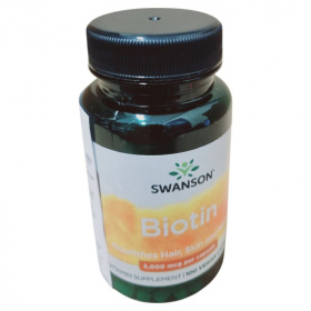 A Swanson Biotin étrend-kiegészítő kapszula formájában kínálja a biotint, amely egy fontos B-vitamin. A termék 5000 mcg biotint tartalmaz kapszulánként, ami hozzájárulhat a haj, a bőr és a köröm egészségének fenntartásához. A kapszulák rizslisztet és zselatint tartalmaznak. A termék használata során fontos, hogy ne lépjük túl a javasolt napi adagot, és tartsuk távol gyermekektől. A termék terhesség és szoptatás alatt nem ajánlott. A Swanson Health Products által gyártott terméket a Creams of Norway Kft. forgalmazza Magyarországon.