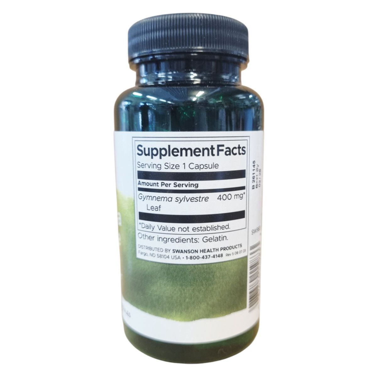 A Swanson Full Spectrum Gymnema Sylvestre Leaf egy gyógynövény alapú étrend-kiegészítő, amely 400 mg Gymnema Sylvestre levél őrleményt tartalmaz kapszulánként. A termék célja, hogy támogassa a vércukorszint egyensúlyát. A kapszulák zselatint tartalmaznak, és a termék 100 kapszulás kiszerelésben kapható. A termék használata nem ajánlott terhesség és szoptatás alatt, és fontos, hogy a javasolt napi mennyiséget ne lépje túl. A termék forgalmazója a Creams of USA Kft., és az OGYÉI nyilvántartási száma 21477/2019.
