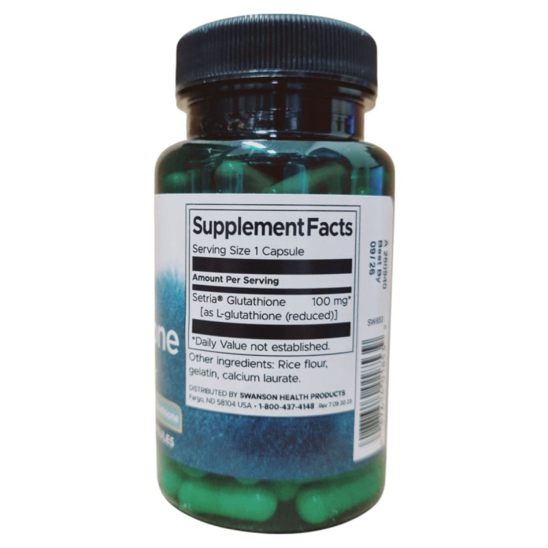 Az L-Glutation (redukált) étrend-kiegészítő a Swanson Health Products által gyártott termék, amely kapszulánként 100 mg L-Glutationt tartalmaz. A termék célja, hogy támogassa a szervezet antioxidáns védelmét. Az összetevők között megtalálható a rizsliszt, zselatin és kalcium-laurát. A termék használata során fontos betartani az ajánlott napi mennyiséget, és figyelembe venni a figyelmeztetéseket, különösen terhesség és szoptatás alatt. A terméket száraz, hűvös helyen kell tárolni, és gyermekek elől elzárva tartani. A forgalmazó a Creams of Norway Kft, Debrecenben található.
