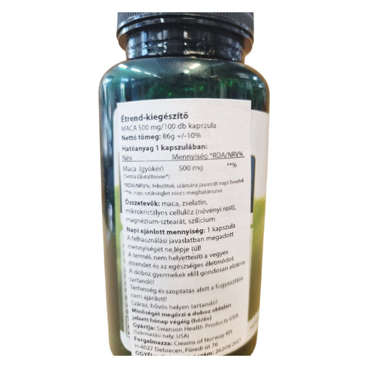 A Swanson Full Spectrum Maca egy növényi alapú étrend-kiegészítő, amely a maca gyökér kivonatát tartalmazza. A termék 500 mg maca gyökeret biztosíthat kapszulánként, amely hozzájárulhat a szexuális egészség támogatásához és az energiaszint fenntartásához. A termék vegán kapszulákban érhető el, és 100 kapszulát tartalmaz, amely 50 napi adagot biztosíthat. A termék használata nem ajánlott terhesség és szoptatás alatt. Tárolása száraz, hűvös helyen javasolt, és a doboz gyermekek elől gondosan elzárva tartandó.