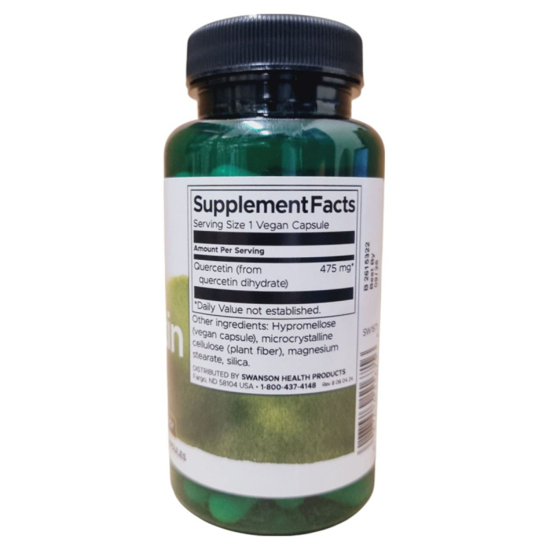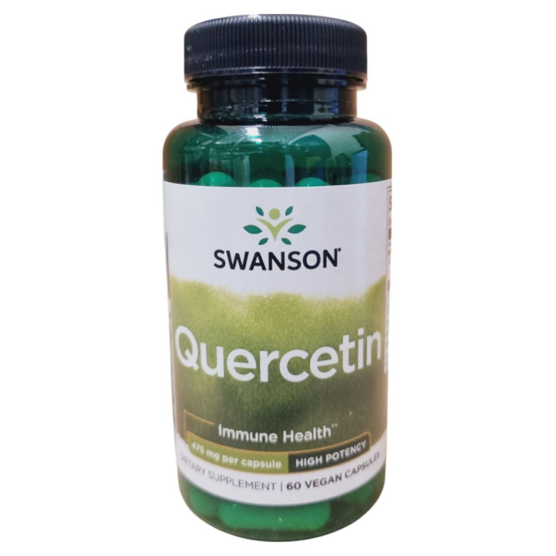 A Swanson QUERCETIN étrend-kiegészítő kapszulánként 475 mg kvercetint tartalmaz, amely egy természetes flavonoid. A termék növényi alapú kapszulában érkezik, és a kvercetin hozzájárulhat a szervezet antioxidáns védelmének támogatásához. A termék nem helyettesíti a vegyes étrendet és az egészséges életmódot. Fontos, hogy a javasolt napi adagot ne lépje túl, és a terméket gyermekek elől elzárva tartsa. Terhesség és szoptatás alatt a fogyasztása nem ajánlott. A termék minőségét a doboz oldalán jelzett hónap végéig őrzi meg. Gyártja a Swanson Health Products az USA-ban, és forgalmazza a Creams of Norway Kft. Magyarországon.