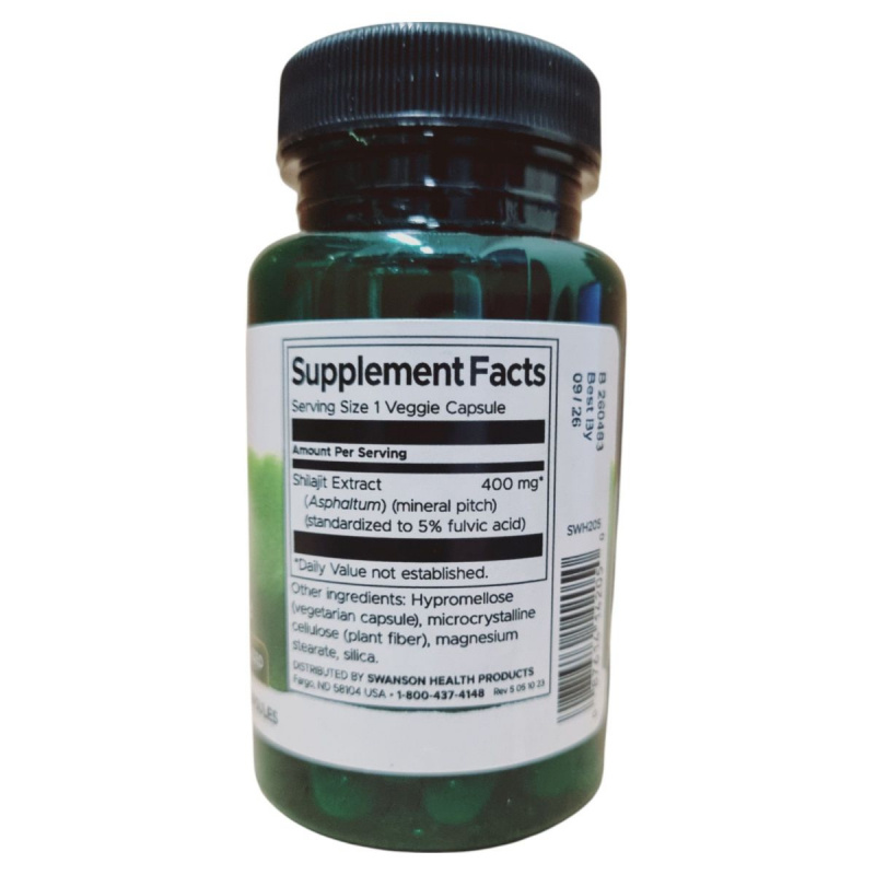 A SWANSON Shilajit kivonat egy étrend-kiegészítő, amely 400 mg shilajit kivonatot tartalmaz kapszulánként, és standardizálva van 5% fulvosavvá. A termék hipromellóz alapú növényi kapszulában érkezik, amely mikrokristályos cellulózt, magnézium-sztearátot és szilícium-dioxidot is tartalmaz. A napi ajánlott adag 1 kapszula, amely segíthet az általános jólét és vitalitás támogatásában. Fontos, hogy a termék nem helyettesíti a vegyes étrendet és az egészséges életmódot. Gyermekek elől elzárva, száraz, hűvös helyen tárolandó. A terméket a Swanson Health Products gyártja, és az OGYÉI notifikációs száma 36177/2024.