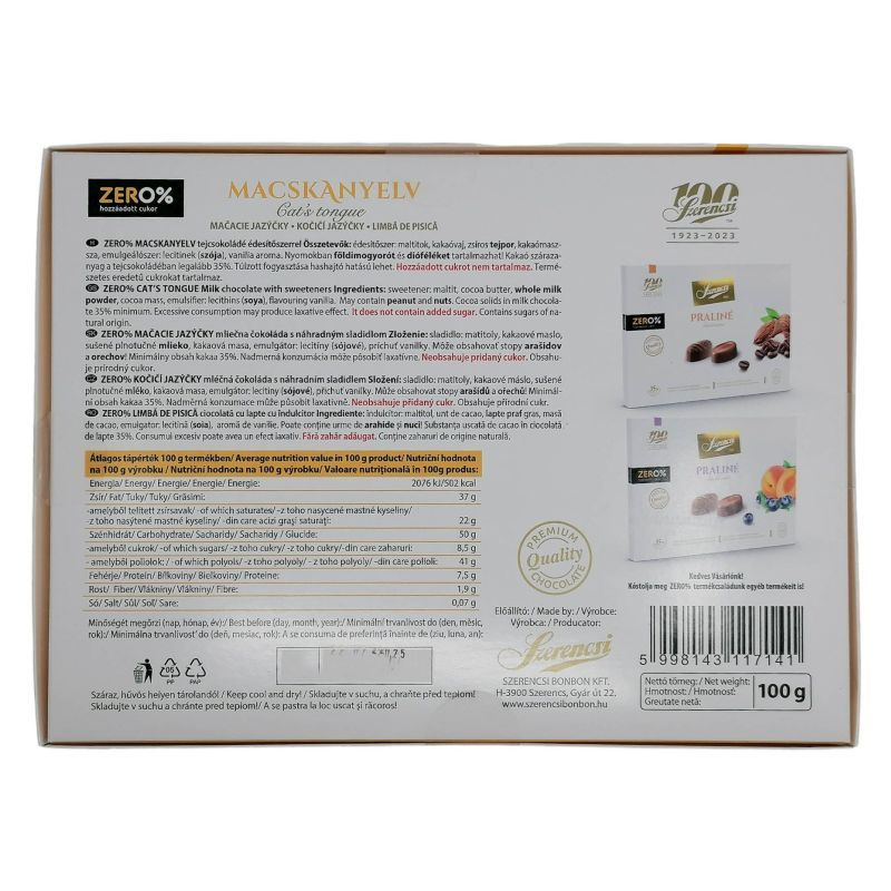 Édesítőszer: maltitok, kakaóvaj, zsíros tejpor, kakaómassza, emulgeálószer: lecitinek (szója), vanília aroma.