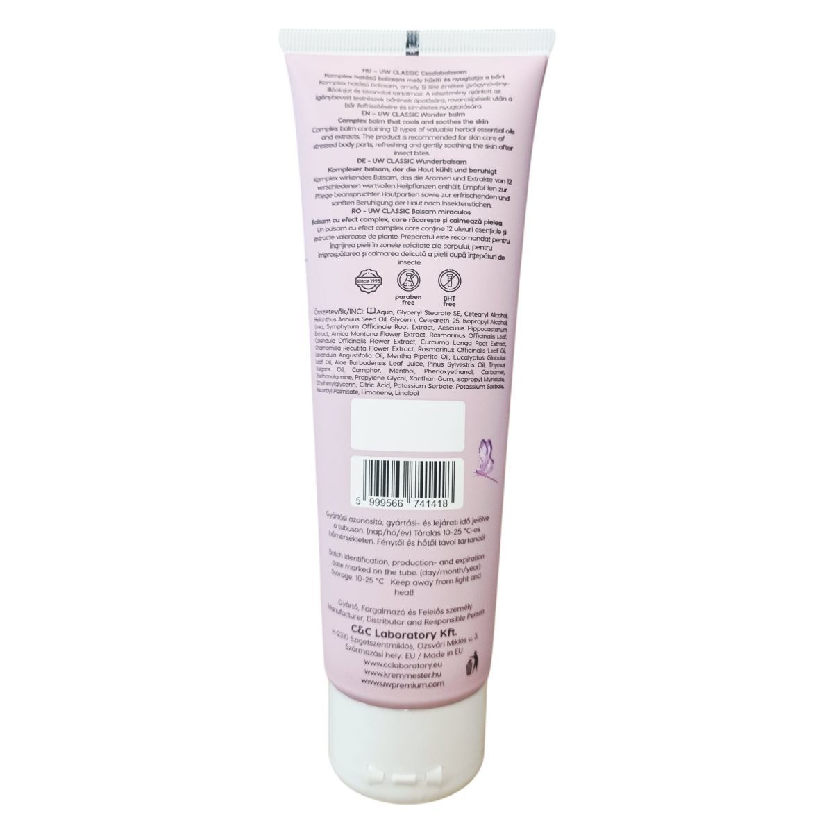 A UW Classic Wonder Balm egy komplexen ható balzsam, amely 12 különböző gyógynövény kivonatát és illóolaját tartalmazza. A készítmény célja a bőr hűsítése és nyugtatása, valamint az igénybevett bőrfelületek ápolása. Alkalmazása javasolt a bőr felfrissítésére és enyhe megnyugtatására, például rovarcsípések után. A termék parabén- és BHT-mentes összetétellel készül, gyártási és lejárati ideje a tubuson kerül feltüntetésre.