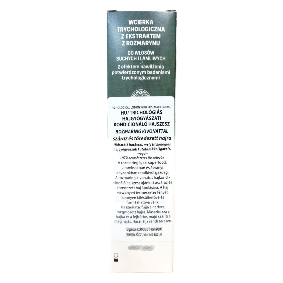 Hidratáló hatású hajápoló, amelyet trichológiai vizsgálatok is megerősítettek. A rozmaringkivonat segíthet a száraz és töredezett haj ápolásában, visszaadva annak rugalmasságát és fényét.