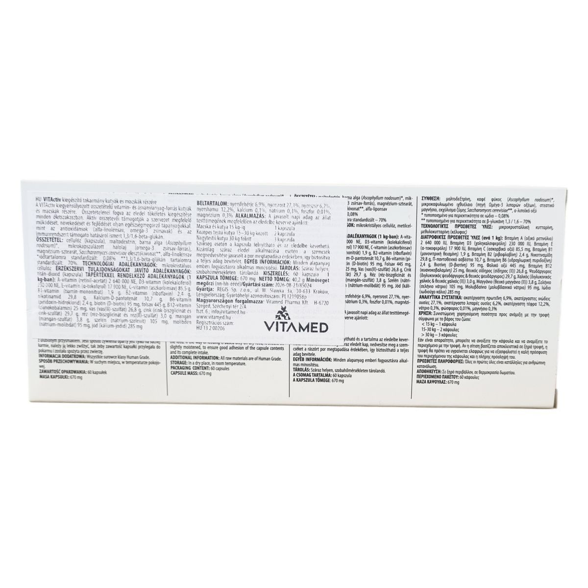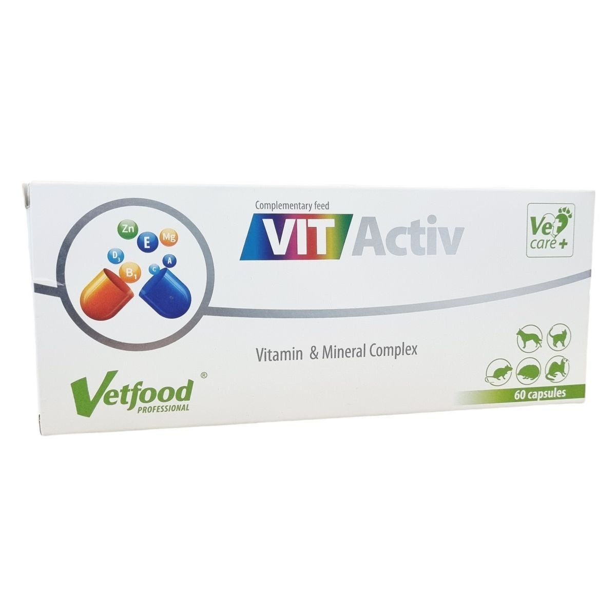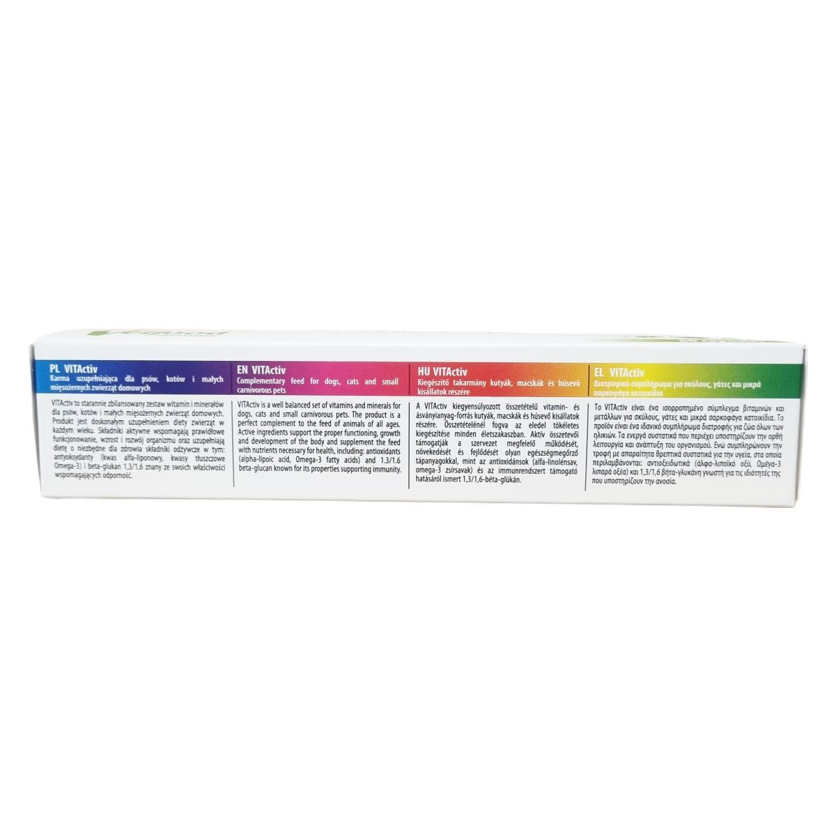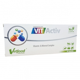 A VITActiv egy kiegyensúlyozott vitamin- és ásványianyag-komplex kutyák, macskák és húsevő kisállatok részére, amely kiegészíti az állatok étrendjét minden életszakaszban. Aktív összetevői antioxidánsokat (alfa-linolénsav, omega-3 zsírsavak) és az immunrendszer működését támogató 1,3/1,6-beta-glükánt tartalmaznak. Az alapanyagok emberi fogyasztásra alkalmas minőségűek, és a kapszula könnyen adagolható, szükség esetén felnyitható, eledelbe keverhető formában kerül forgalomba. A készítmény a megfelelő működést, növekedést és fejlődést támogathatja, miközben pótolja a szervezet számára nélkülözhetetlen vitaminokat és ásványi anyagokat. A termék gyártója a REGIS Sp. z o.o. Lengyelországban, forgalmazója pedig a Vitamed Pharma Kft. Magyarországon.
