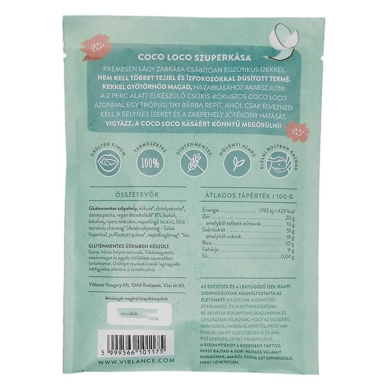 Nem kell többet tejjel és íz fokozókkal dúsított termékekkel gyötörnöd magad, ha zabkásához akarsz jutni. A 2 perc alatt elkészülő csokis-kókuszos Coco Loco azonnal egy trópusi Tiki bárba repít, ahol csak élvezned kell a selymes ízeket és a zabpehely jótékony hatását. Kár lenne tagadni, a Coco Loco kásáért könnyű megőrülni.