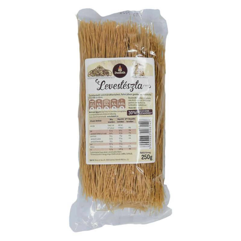 Csökkentett szénhidráttartalmú, fehérjében gazdag levestészta.