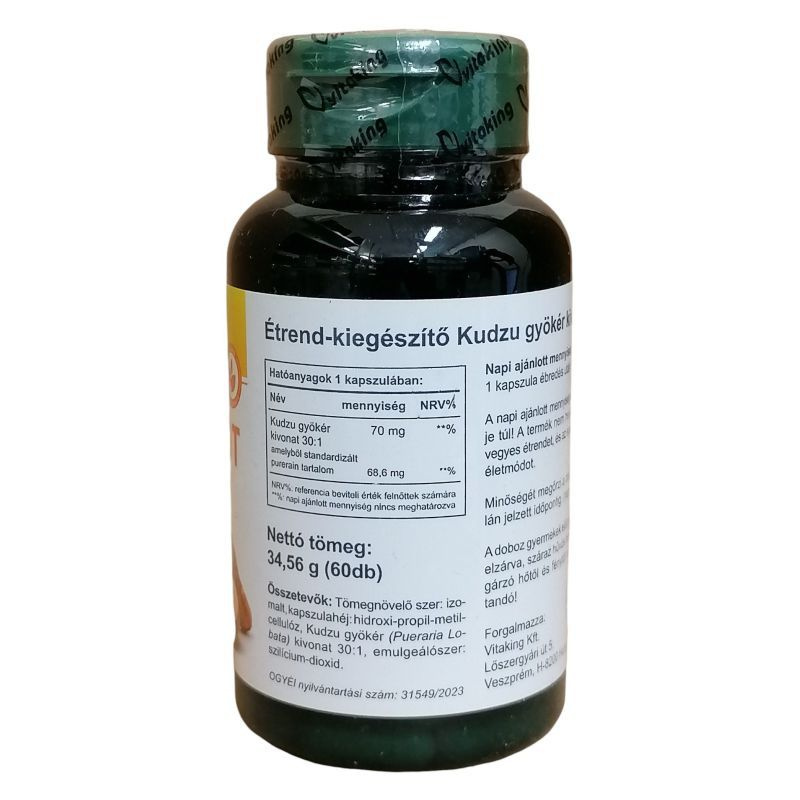 A készítmény kudzu gyökér kivonatot tartalmaz 30:1 arányban, standardizált puerarin tartalommal. Vegán kapszulahéjjal készül, 60 kapszulát tartalmazó kiszerelésben.