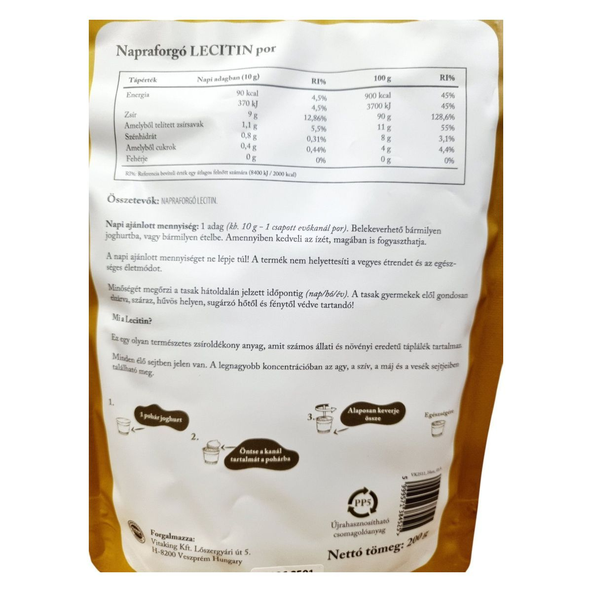 A napraforgó lecitin természetes foszfolipid-forrás, amely hozzájárulhat a sejthártyák egészségéhez és a normál zsíranyagcseréhez. Mivel nem tartalmaz szóját, kiváló alternatíva azok számára, akik szójamentes étrendet követnek. A lecitin a test minden sejtjében jelen van, különösen az agyban, a szívben és a májban. A por formájú változat könnyen beilleszthető vegán, paleo vagy ketogén étrendbe, és konyhai felhasználása is egyszerű – akár turmixba, zabkásába vagy joghurtba keverve is fogyasztható.