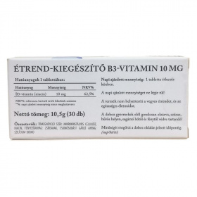 Hatóanyagok 1 tablettában: B3-vitamin 10 mg 62,5%.