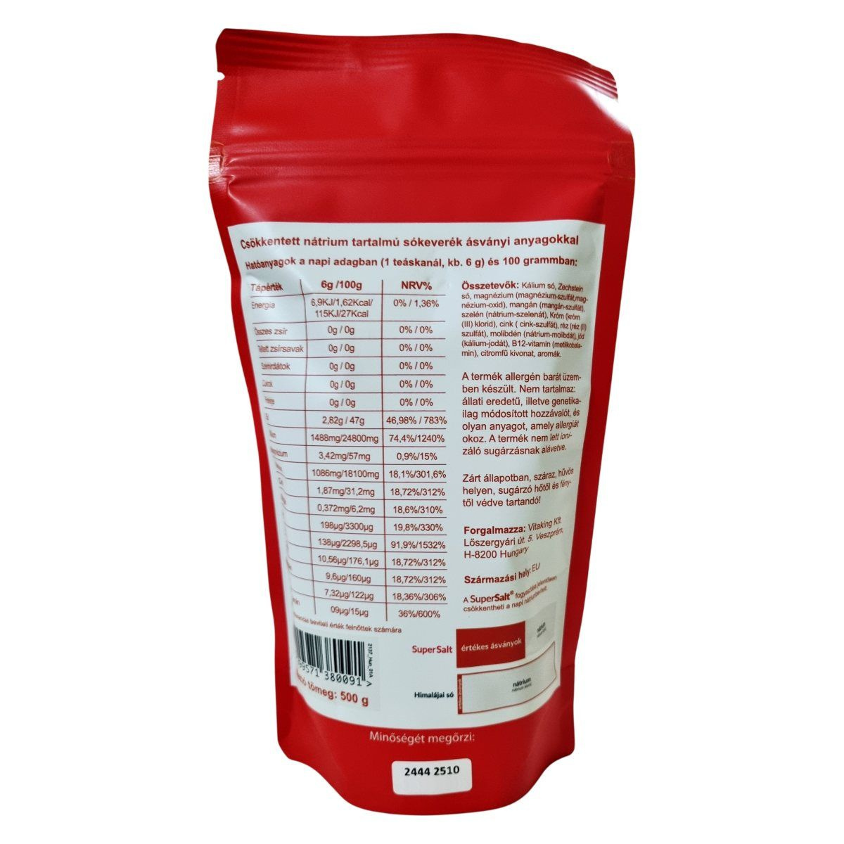 A Vitaking SuperSalt ideális alternatívája lehet a hagyományos konyhasónak, mivel jelentősen csökkentett nátriumtartalommal rendelkezik, ugyanakkor számos értékes ásványi anyaggal és B12-vitaminnal gazdagították. Rendszeres fogyasztása támogathatja a kiegyensúlyozott étrendet, különösen azok számára, akik szeretnék mérsékelni a nátriumbevitelt. A termék GMO-mentes, vegán és vegetáriánus étrendbe is beilleszthető, miközben kellemes ízzel járulhat hozzá a mindennapi étkezésekhez. A SuperSalt nemcsak az ételek ízesítésére, hanem az ásványi anyagok bevitelének kiegészítésére is alkalmas választás lehet.
