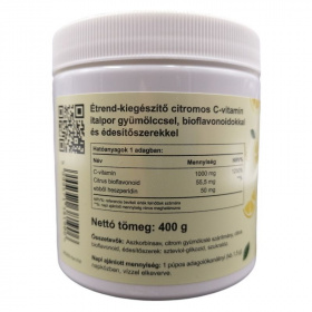 Aszkorbinsav, citrom gyümölcslé szárítmány, citrus bioflavonoid, édesítőszerek: szteviol-glikozid, szukralóz