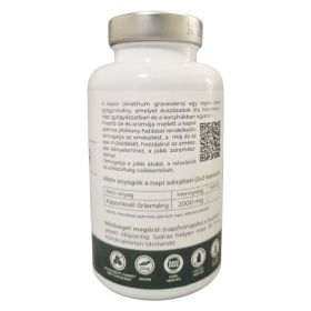A kapor (Anethum graveolens) évszázadok óta ismert gyógynövény, melyet a népi gyógyászatban és a konyhákban egyaránt használnak. Frissítő íze és aromája mellett segítheti az emésztést, a máj és az epe működését, és hozzájárulhat az emésztési kényelemhez és a jobb zsíremésztéshez. Támogathatja a jobb alvást, a relaxációt és a feszültség csökkentését. A termék nem tartalmaz hozzáadott cukrot és teljes mértékben mentes a GMO-tól és a laktóztól. A kapszula vegetáriánus és vegán étrendbe egyaránt beilleszthető.