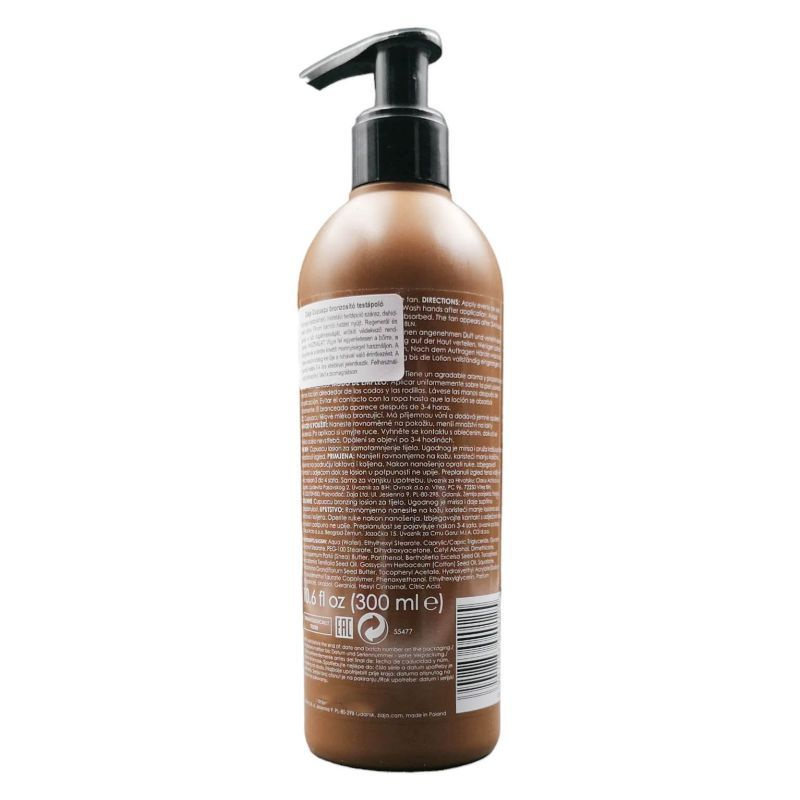 Használata finom, lágy csillogást ad a bőrnek. A növényi DHA tartalma finom barnás árnyalatot kölcsönöz a bőrnek. Különleges, enyhén kakaós és mogyorós illataromája semlegesíti a bronzosító termékekben használatos DHA (Dihidroxi-aceton) illatát. Lágy állagának és pumpás adagolójának köszönhetően könnyen alkalmazható.