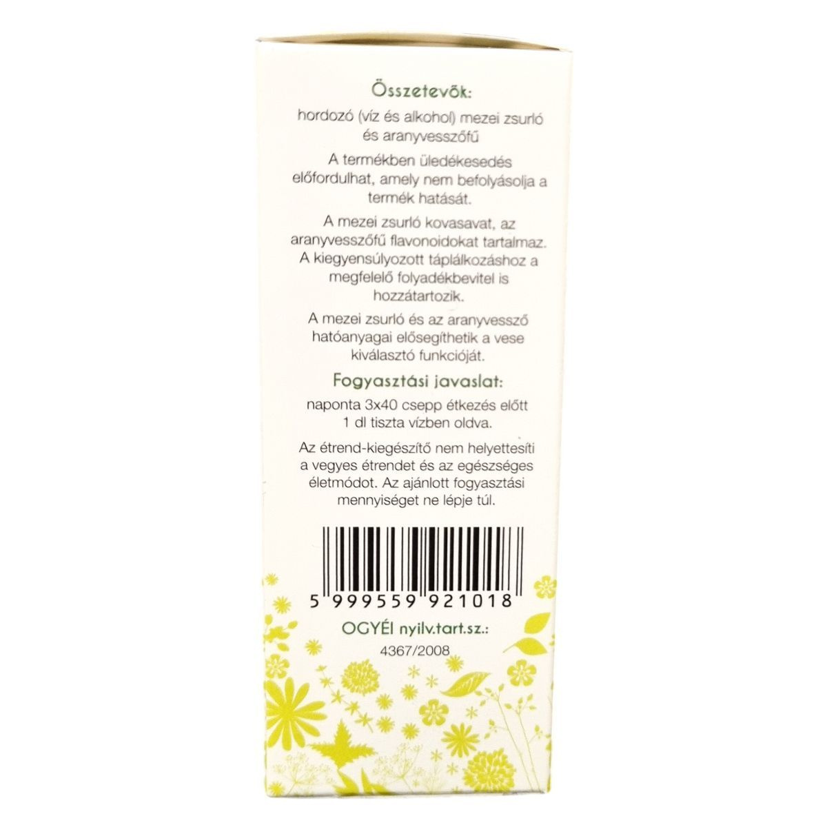 Az Arany Csepp mezei zsurló és aranyvesszőfű alkoholos oldata, amely hozzájárulhat a szervezet megfelelő működéséhez, különösen a vese kiválasztó funkciója támogatásában.