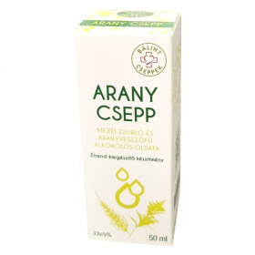 Az Arany Csepp egy mezei zsurló és aranyvesszőfű alkoholos oldatát tartalmazó étrend-kiegészítő. Egy adagban – 120 cseppben – 1 gramm mezei zsurló és 1 gramm aranyvesszőfű található meg. A mezei zsurló kovasavat, az aranyvesszőfű flavonoidokat tartalmaz, melyek hatóanyagai elősegíthetik a vese kiválasztó funkcióját. A termék hordozó anyagai víz és alkohol. Ülepedés előfordulhat, ami nem befolyásolja a termék hatását. A kiegyensúlyozott táplálkozás és megfelelő folyadékbevitel fontos a szervezet egészsége szempontjából. Az ajánlott fogyasztási javaslat napi három alkalommal 40 csepp, étkezés előtt, 1 dl tiszta vízben oldva. A készítmény nem helyettesíti a változatos étrendet és az egészséges életmódot.
