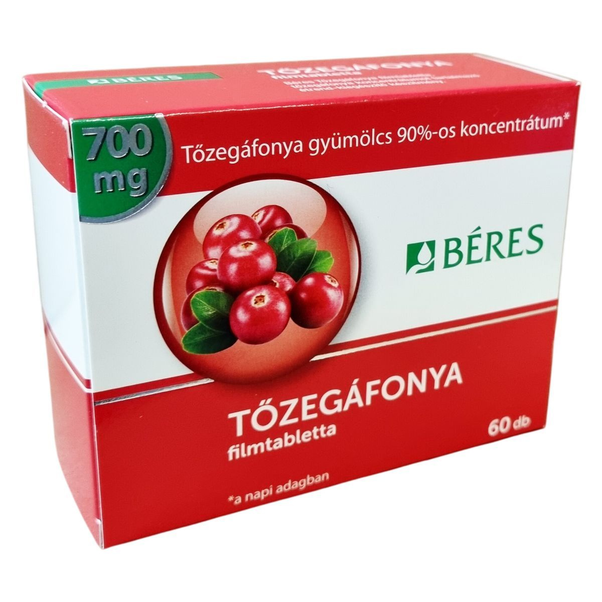 700 mg Tőzegáfonya gyümölcs 90%-os koncentrátum a napi adagban.