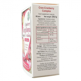 A húgyúti szervek egészségének fenntartásához tőzegáfonya kivonattal, bíbor kasvirággal (Echinacea purpurea), inulinnal és C-vitaminnal. A tőzegáfonya (Vaccinium macrocarpon) hatóanyagai (proantocianidinek) segíthetik a hugyút egészségének fenntartását.
