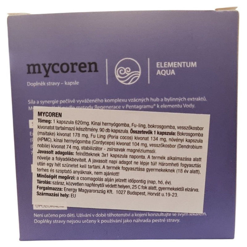Összetevők 1 kapszulában: Bokrosgomba (maitake) kivonat 178 mg, Fu Ling (Poria cocos) kivonat 134 mg, növényi kapszula (HPMC), kínai hernyógomba (Cordyceps) kivonat 104 mg, vesszőkosbor (Dendrobium nobile) kivonat 74 mg, stabilizátor – zsírsavak magnéziumsói.