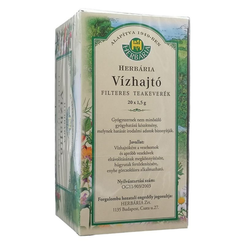 Gyógyszernek nem minősülő gyógyhatású készítmény, melynek hatását népgyógyászati adatok igazolják. Mi a teakeverék összetevője? 1 filter tasak 0, 30 g Kamillavirágzatot (Matricariae flos), 0, 30 g Nyírfalevelet (Betulae folium), 0, 225 g Tarackbúza gyökértörzset (Graminis rhizoma), 0, 15 g Borsosmenta levelet (Menthae piperitae folium), 0, 15 g Igazi édesgyökeret (Liquiritiae radix), 0, 15 g Lestyán gyökeret (Levistici radix), 0, 15 g Mezei zsurló meddő hajtást (Equiseti herba), 0, 075 g Csalánlevelet (Urticae folium) tartalmaz porított formában. Mit tartalmaz még a készítmény? A teakeverék a gyógynövényeken kívül mást nem tartalmaz. Mikor ajánlott a készítmény alkalmazása? Vízhajtóként a vesehomok és apróbb vesekövek eltávolításának megkönnyítésére, húgyutak fertőtlenítésére, enyhe görcsoldásra alkalmazható. Mikor nem ajánlott a készítmény alkalmazása? Ne alkalmazza a teát szív-, és veseelégtelenségből adódó ödéma esetén, valamint ha bármely összetevővel szemben egyéni túlérzékenysége van. Mit kell tudni az alkalmazás megkezdése előtt? Összetevőinek hatóanyagai (szaponinok, illóolajok) a veseműködésre kifejtett enyhe stimuláló hatásuk következtében fokozzák a vizelet kiválasztását, elősegítik a vesehomok és az apróbb vesekövek eltávozását, enyhe görcsoldó és húgyúti fertőtlenítő hatásúak. Krónikus cukor-, szív-, és vesebetegségben valamint magas vérnyomásban szenvedők a tea kiegészítő kezelésként történő alkalmazását beszéljék meg kezelőorvosukkal. Alkalmazhatják-e a készítményt gyermekek? A teakeverék alkalmazása gyermekeknek nem ajánlott. Alkalmazható-e a teakeverék más gyógyszerekkel? Nem állnak rendelkezésre vizsgálati adatok arra vonatkozóan, hogy a tea fogyasztása befolyásolja-e más készítmények felszívódását. Amennyiben Ön vízhajtó gyógyszert szed, úgy a teafogyasztás megkezdése kellő óvatossággal történjen. Várandósság és szoptatás ideje alatt alkalmazható-e a tea? Ezen élethelyzetekben végzett célzott irányú vizsgálatok hiányában a teakeverék alkalmazása nem javasolt. Hogyan és milyen adagolásban kell a teát fogyasztani? 2-3 db filter tasakot forrázzunk le egy csészényi (kb. 2, 5 dl) forró vízzel. 10-15 percig lefedve hagyjuk állni. A filtereket eltávolítva tetszőleges hőmérsékleten és ízesítéssel (pl. édesítve) fogyasztjuk. Reggel és este 1-1 csészényi fogyasztható. Milyen nem várt hatást okozhat a készítmény? Az adagolási javaslat betartása esetén is esetleges egyéni túlérzékenység (allergia) előfordulhat. Ha nem várt hatást észlel, hagyja abba a tea fogyasztását és forduljon orvosához. Mire kell még ügyelni a készítmény alkalmazása során? A teakeveréket gyermekek elől el kell zárni! A dobozon feltüntetett lejárati időn túl ne fogyassza a teát! Mennyi ideig alkalmazható a készítmény? A teakeverék kúraszerűen (legfeljebb 3-4 hétig) fogyasztható, de ha panaszai nem szűnnek, vagy rosszabbodnak, azonnal keresse fel kezelőorvosát.