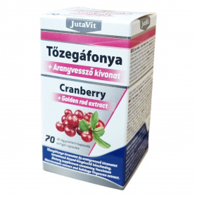 A JutaVit Tőzegáfonya + Aranyvessző kivonat lágyzselatin kapszulában található étrend-kiegészítő készítmény Vaccinium macrocarpon (tőzegáfonya) és Solidago virgaurea (aranyvessző) kivonatot tartalmaz. A napi adag két lágykapszula, melyeket étkezés előtt ajánlott bő folyadékkal lenyelni. A termék összetevői között napraforgóolaj, marha eredetű zselatin, valamint antioxidánsként tokóferolban gazdag kivonat szerepel. A készítményt szobahőmérsékleten, napfénytől védve, gyermekektől elzárva kell tárolni. A táplálékkiegészítő nem helyettesíti a változatos étrendet és az egészséges életmódot, illetve az ajánlott napi adagot nem szabad túllépni. A termék nettó tömege 69,9 g, mely 70 darab lágyzselatin kapszulát tartalmaz. A gyártó a Juvapharma Kft., Magyarország.