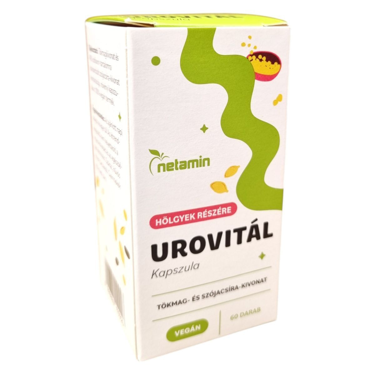 A Netamin Urovitál kapszula kifejezetten hölgyek számára készült, tökmag- és szójacsíra-kivonat kombinációjával. A termék 100% vegán, és növényi kapszulában található. A szójacsíra-kivonat 40% izoflavon-tartalomra standardizált, ami hozzájárulhat a nők egészségének támogatásához. A kapszulák napi kétszeri fogyasztása javasolt bő folyadékkal, lehetőleg étkezés közben. Fontos, hogy az ajánlott napi adagot ne lépje túl, és az étrend-kiegészítő nem helyettesíti a vegyes étrendet és az egészséges életmódot. A termék forgalmazója a Natural Herbal Kft., és a kapszulák nettó tömege 36 gramm.